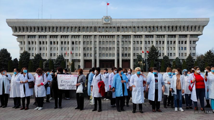 Кыргызстан: Медики столицы вышли на митинг к Жогорку Кенешу. Требуют обещанных компенсаций